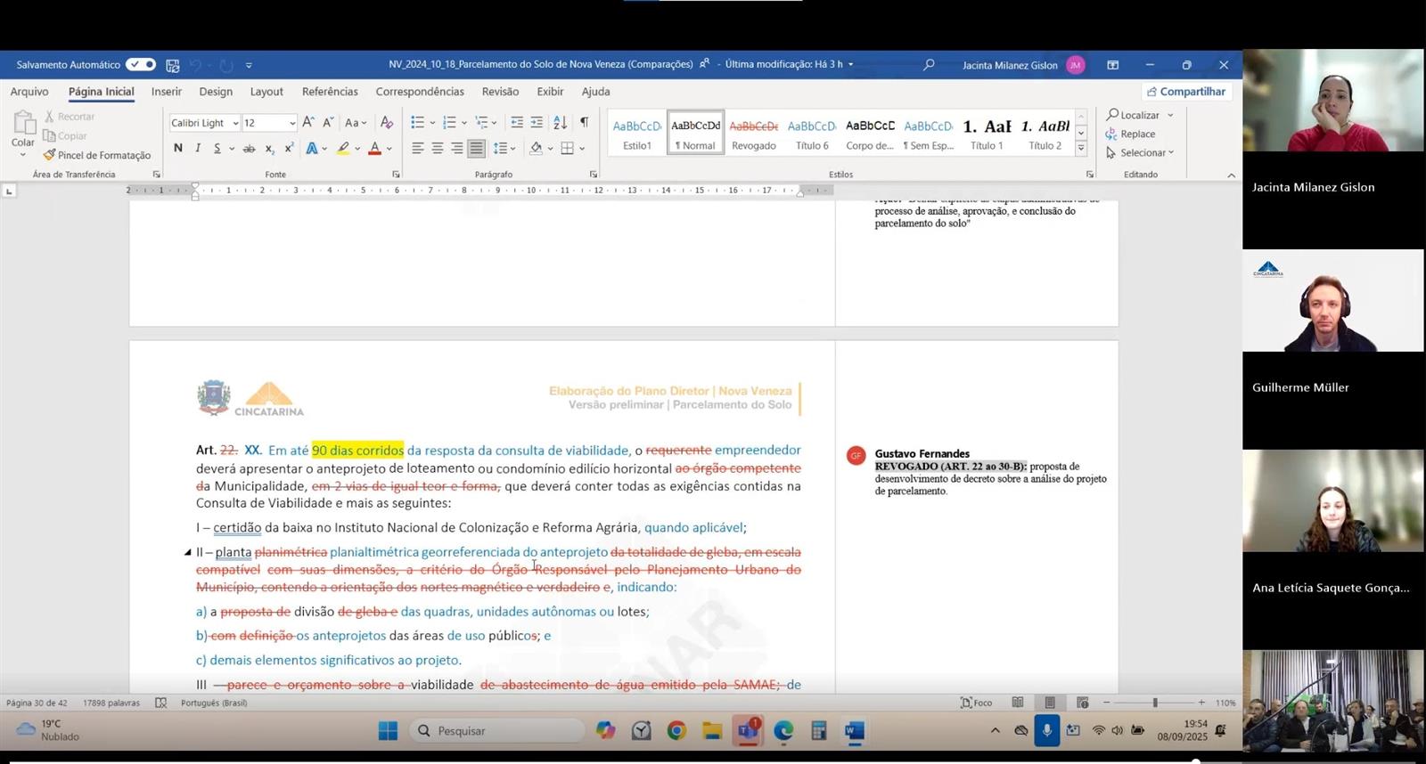 14ª REUNIÃO TÉCNICA COM COMISSÃO TÉCNICA - MINUTA DE LEI DE PARCELAMENTO DO SOLO 08.09.2025
